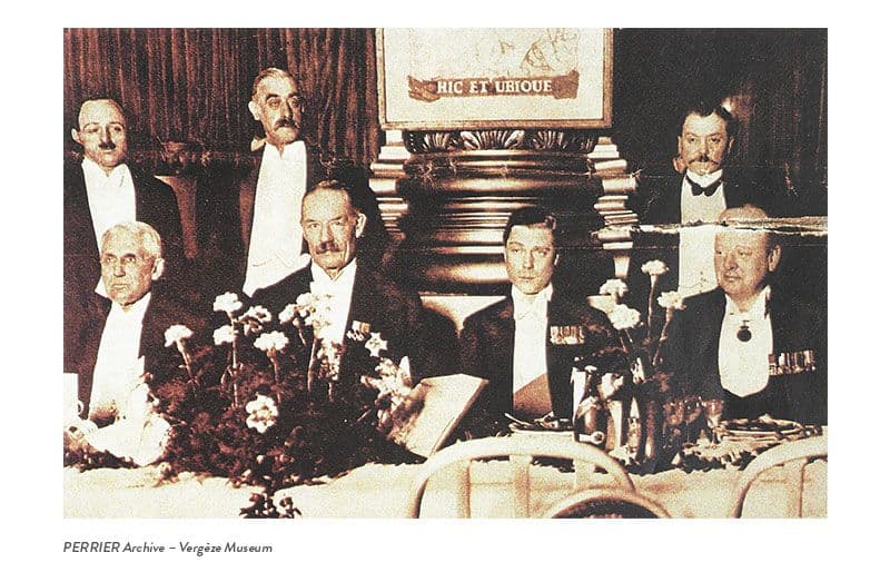 Nous pouvons voir ici le prince de Wales, Edouard VII, et Winston Churchill dégustant une bouteille de Perrier.