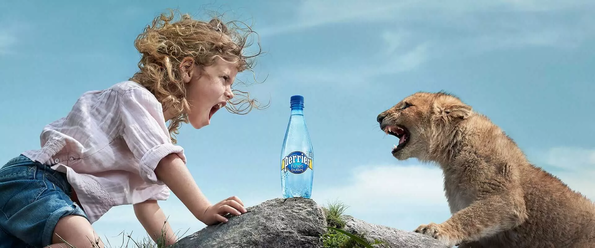 En clin d’oeil aux bulles plus fines mais toujours aussi rafraîchissantes de PERRIER Fines Bulles, nous avons imaginé un spot qui conserve l’intensité, l’énergie et la fougue du film de Jean-Paul Goude, mais avec plus de légèreté : l’héroïne a été transformée en une fillette intrépide, le lion est devenu lionceau et la bande-son se réinvente en remix aérien du titre original. Si cette nouvelle campagne joue avec les codes de la publicité originale, l’équipe créative a voulu montrer qu'elle porte des valeurs, chères à PERRIER, qui restent plus que jamais contemporaines : bravoure, curiosité, indépendance, goût de l’exploration…